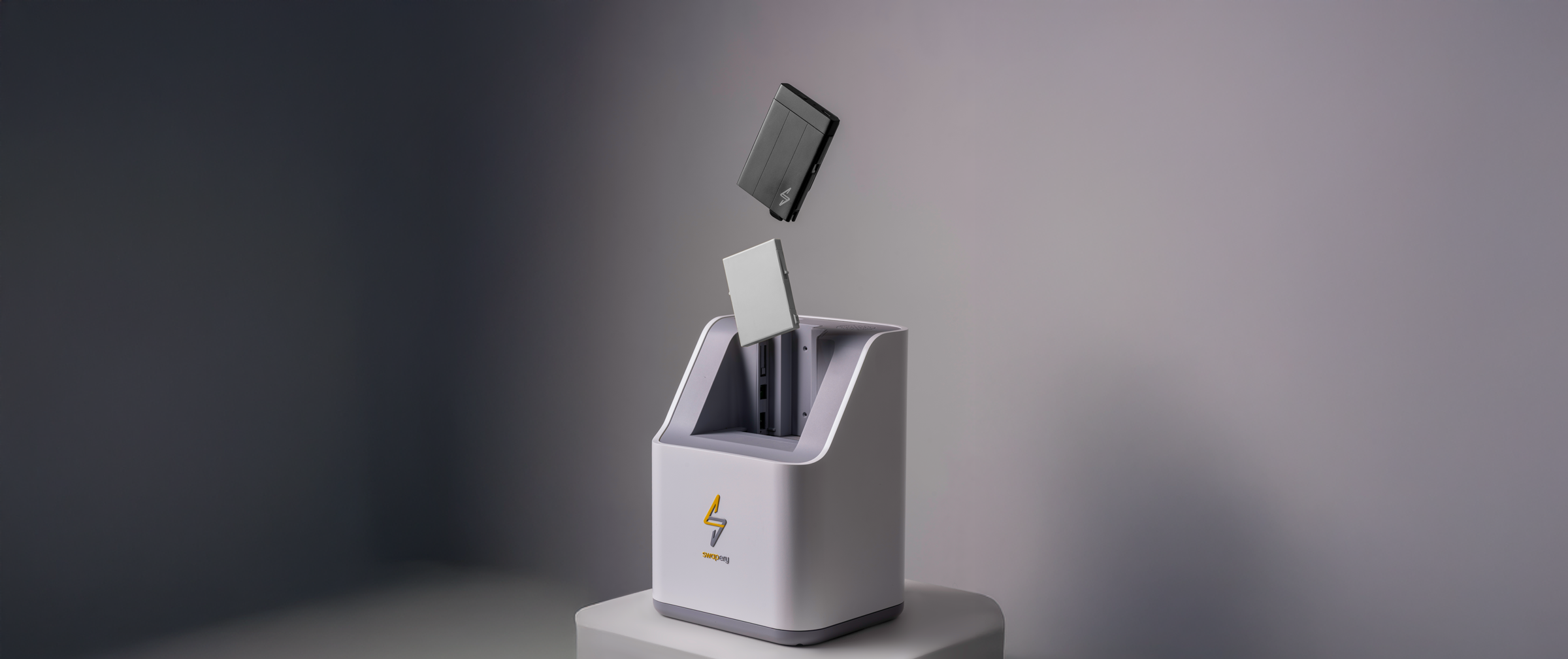 The station automatically ejects a fully charged battery and takes in the depleted one. It completes the swap within seconds no cables, no waiting, and no need to plug your phone.